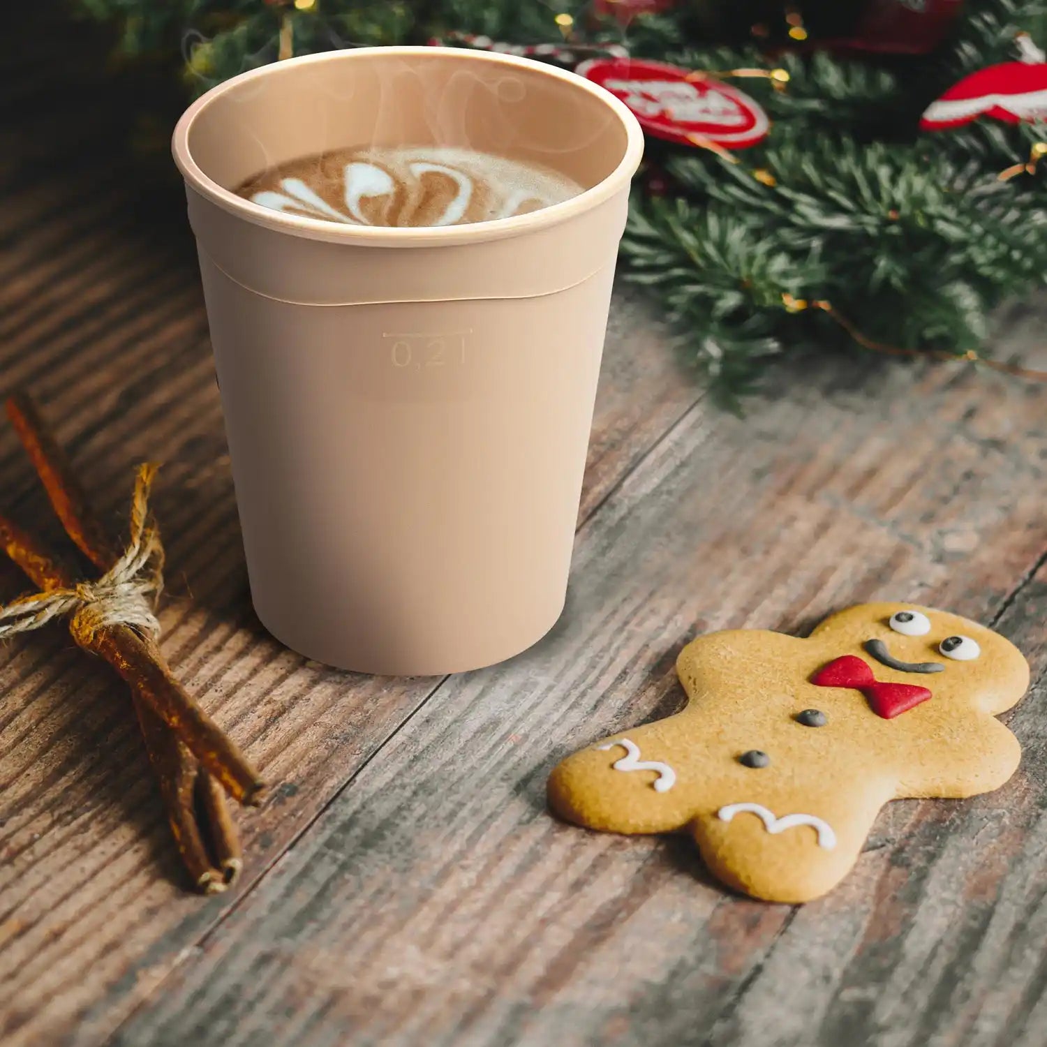 Der Mehrwegbecher aus Polypropylen (PP) in der Farbe Creme hat einen Durchmesser von 80 mm und ein Fassungsvermögen von 0,2 Litern. Er ist robust, langlebig und ideal für den wiederholten Gebrauch geeignet. Der Becher ist leicht, bruchsicher und spülmaschinenfest, was ihn zu einer praktischen und umweltfreundlichen Alternative zu Einwegbechern macht. Die glatte Oberfläche erleichtert die Reinigung und sorgt für eine angenehme Haptik. Das Set enthält 10 Becher, die sich perfekt für den Einsatz in Cafés, Büros oder bei Veranstaltungen eignen, bei denen Nachhaltigkeit im Vordergrund steht.