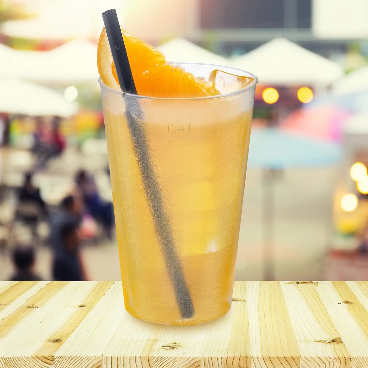 Der wiederverwendbare Pfandbecher aus Polypropylen (PP) mit einem Durchmesser von 86 mm und einem Fassungsvermögen von 0,4 Litern ist eine umweltfreundliche Alternative zu Einwegbechern. Er eignet sich ideal für den Einsatz in Gastronomiebetrieben, bei Veranstaltungen oder im privaten Gebrauch. Der Becher ist robust, langlebig und spülmaschinenfest, was eine einfache Reinigung und Wiederverwendung ermöglicht. Das Material Polypropylen ist bekannt für seine Stabilität und Beständigkeit gegenüber Hitze und Kälte, wodurch der Becher sowohl für heiße als auch kalte Getränke geeignet ist. Die Verpackungseinheit umfasst 50 Stück, was eine praktische Lösung für größere Anlässe oder den regelmäßigen Gebrauch darstellt. Der Becher ist stapelbar, was eine platzsparende Lagerung ermöglicht. Durch die Wiederverwendbarkeit trägt der Becher zur Reduzierung von Abfall bei und unterstützt nachhaltige Praktiken.
